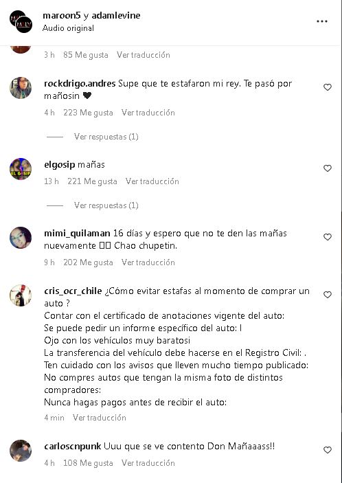 El vocalista de Maroon 5 fue víctima de un fraude al momento de comprar un auto deportivo italiano. Por eso, los chilenos y chilenas corrieron a su cuenta de Instagram a recordarle por qué es apodado como "el mañas".