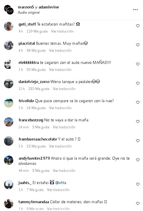 Al darse a conocer esta información, los chilenos y chilenas corrieron a las redes sociales a publicar una serie de memes y comentarios en su Instagram, haciendo alusión al engaño del que fue víctima Levine.Ver esta publicación en Instagram