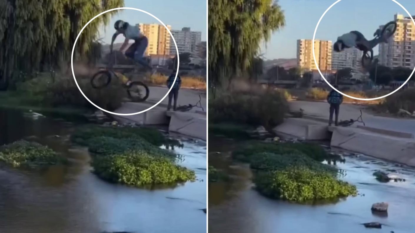 Un joven ciclista se hizo viral esta semana en redes sociales luego de realizar una arriesgada acrobacia sobre el Estero Marga Marga, en la ciudad de Viña del Mar.