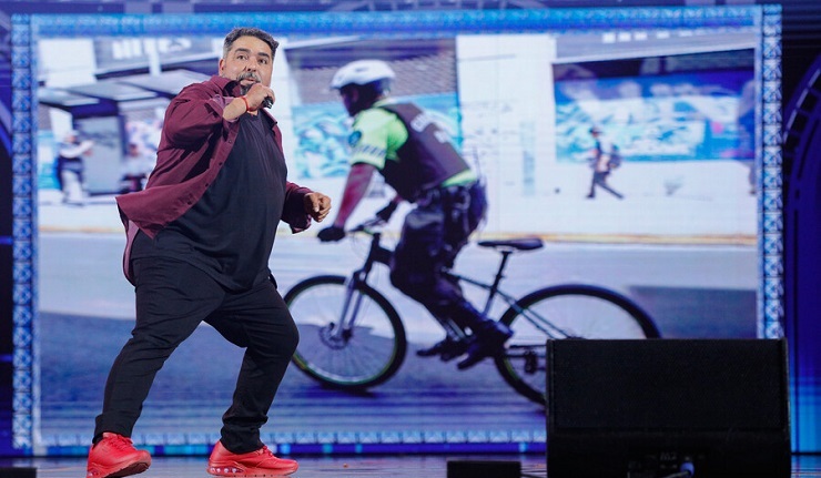 El comediante nacional desató carcajadas en el público al ironizar sobre la seguridad en la céntrica comuna, aprovechando de comentar la labor de Carabineros.