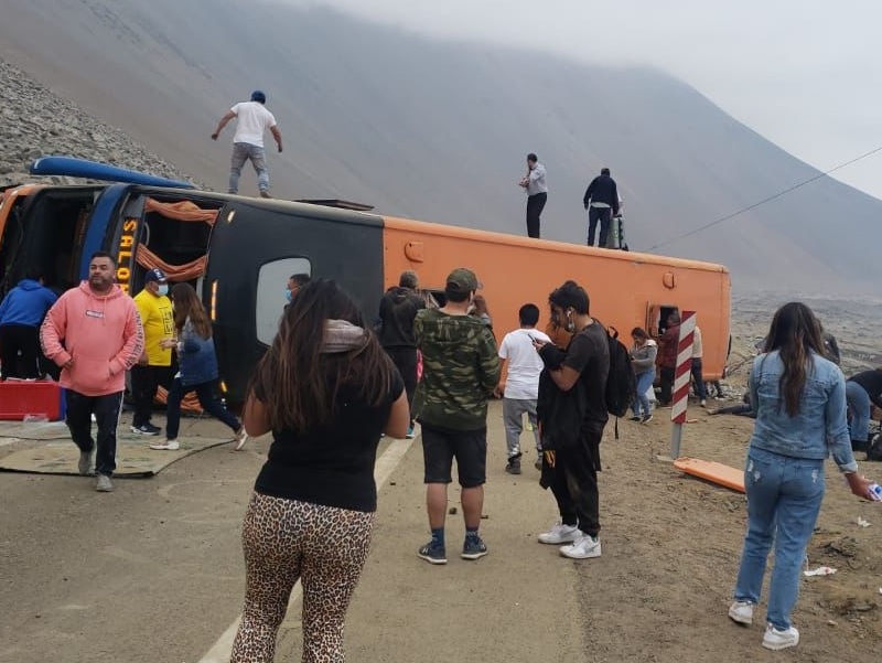 Durante la tarde de este jueves, se registró un accidente en la carretera, en el límite entre la región de Antofagasta y de Tarapacá. Se trata de un volcamiento de un bus de pasajeros.