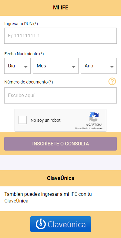 • Ve a la parte derecha de tu pantalla y escribe tus datos en “Mi IFE”. También puedes ingresar con tu Clave Única.
