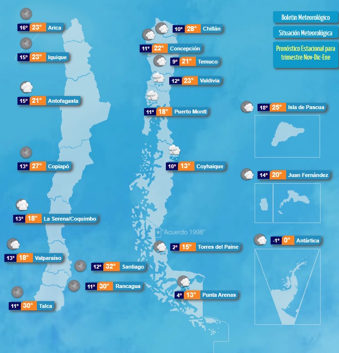 A continuación, te contamos cómo estarán las temperaturas durante este 1 de diciembre obtenidas a través del sitio oficial de la Dirección Meteorológica de Chile.