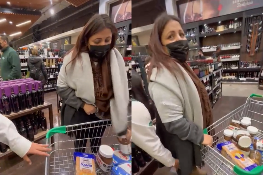 Según se puede apreciar en las imágenes, dos trabajadores del recinto comercial se acercan a la mujer, quien comienza a sacar, uno por uno, los frascos del dulce alimento de crema de cacao y avellanas.