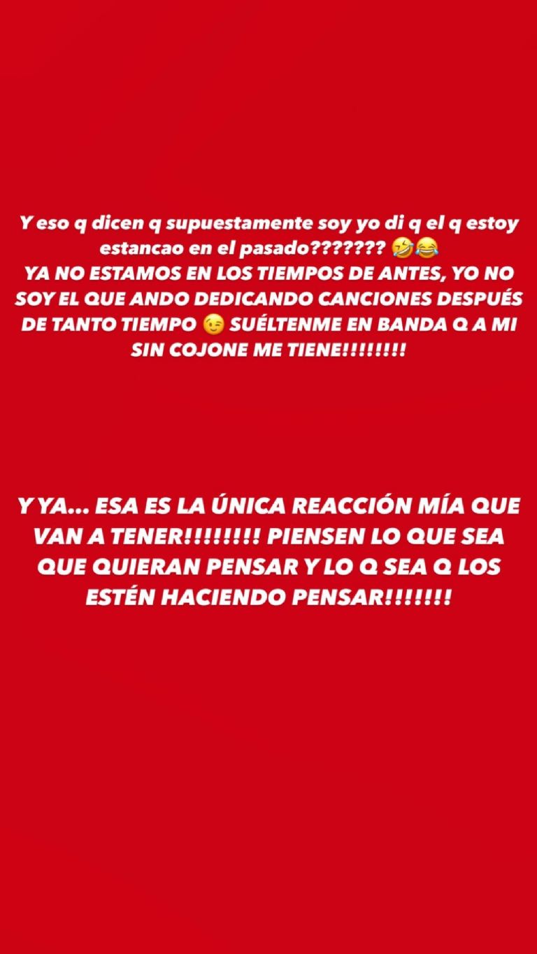Asimismo, apuntó que "ya no estamos en los tiempos de antes, yo no soy el que ando dedicando canciones después de tanto tiempo".