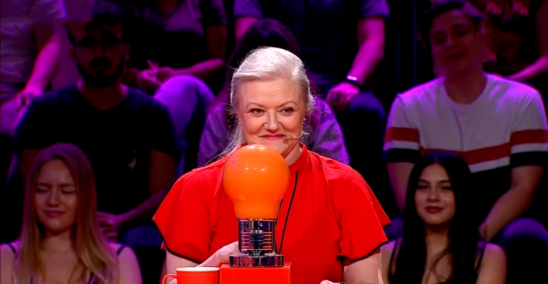 El equipo azul jugó con la categoría “Años 90’”. El primero en acertar una palabra fue Felipe Yáñez, sin embargo, Juan Carlos Valdivia completó las 8 palabras restantes del panel. Esto generó una gran ovación del público y un mini homenaje de Julián Elfenbein hacia al animador.
