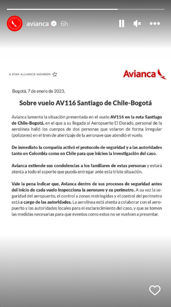 “Avianca extiende sus condolencias a los familiares de estas personas y estará atenta a todo el soporte que pueda entregar ante esta triste situación” anunciaba el comunicado de la aerolínea involucrada en redes sociales.