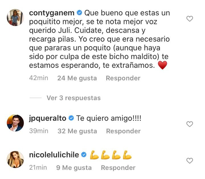 Además, entre los casi 3.500 mensajes que recibió, varios de sus compañeros de televisión le dejaron sus ánimos y buenas vibras para pasar este momento: