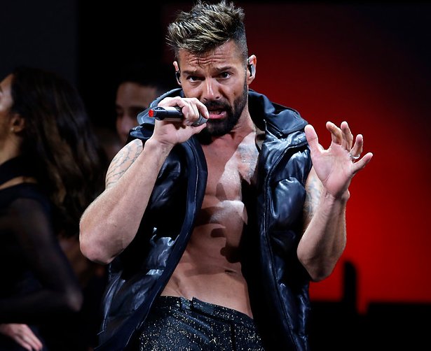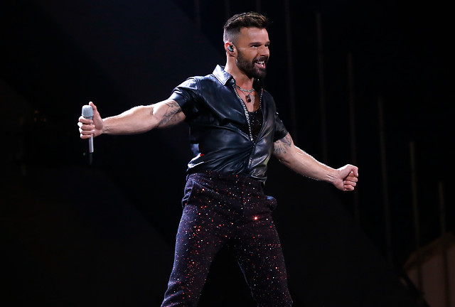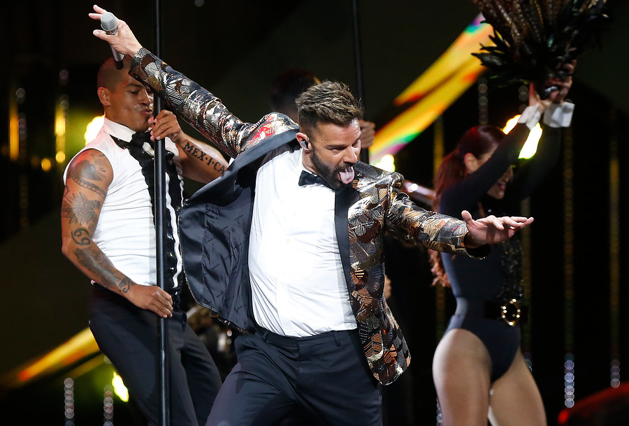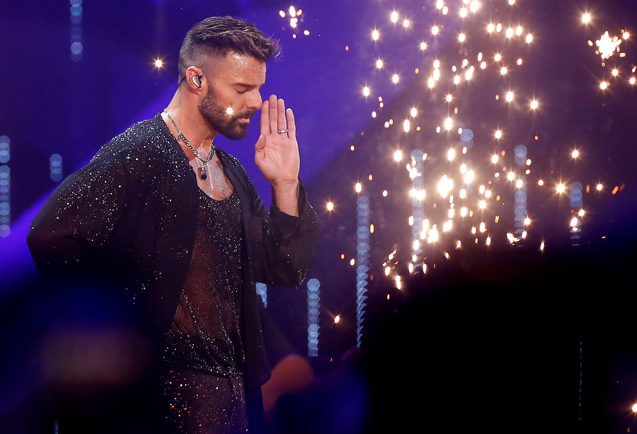 En su primera aparición sobre el escenario, Ricky apareció con un pantalón brillante y una camisa de cuero.