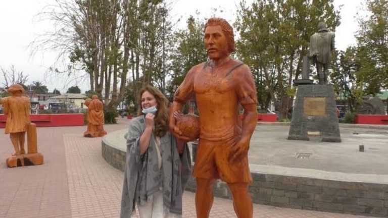 Andrea Díaz, la madre del futbolista, viajó hasta la ciudad de Penco para conocer la escultura en madera que realizaron en homenaje a su hijo. Además, agradeció el cariño que recibe el goleador en Chile: “¡Es un honor tremendo!”.