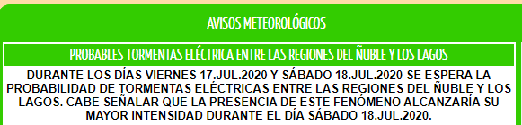 Este domingo 19 de julio caerán precipitaciones intermitentes desde zonas de las regiones de Valparaíso y Metropolitana hasta Aysén. “Santiago registrará tan sólo chubascos, incluso, con claros de sol por momentos”, afirma Sáez.