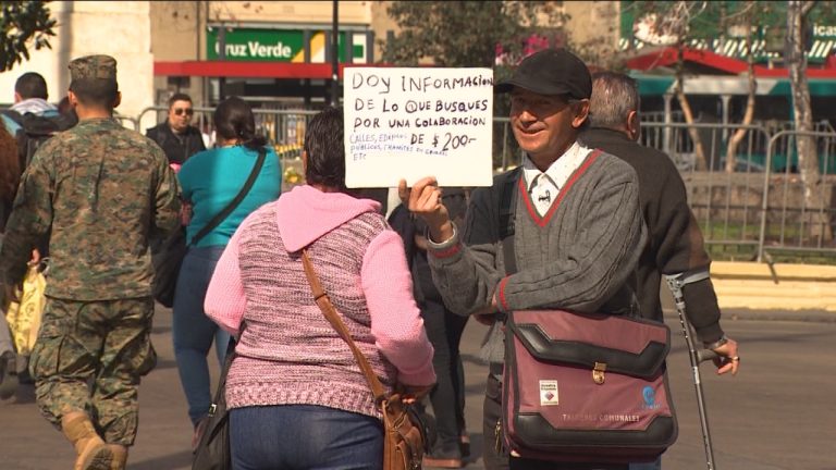"No voy a limosnear": Fotógrafo amateur entrega direcciones por $200 en el centro de Santiago por falta de trabajo