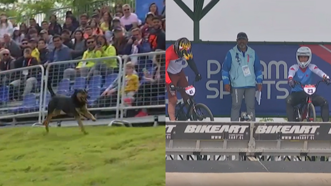 Un personaje muy especial decidió aparecer en las preliminares del BMX Racing masculino de Santiago 2023. Se trata de un perrito que tuvo que ser alcanzado por la organización para que las pruebas pudieran continuar.