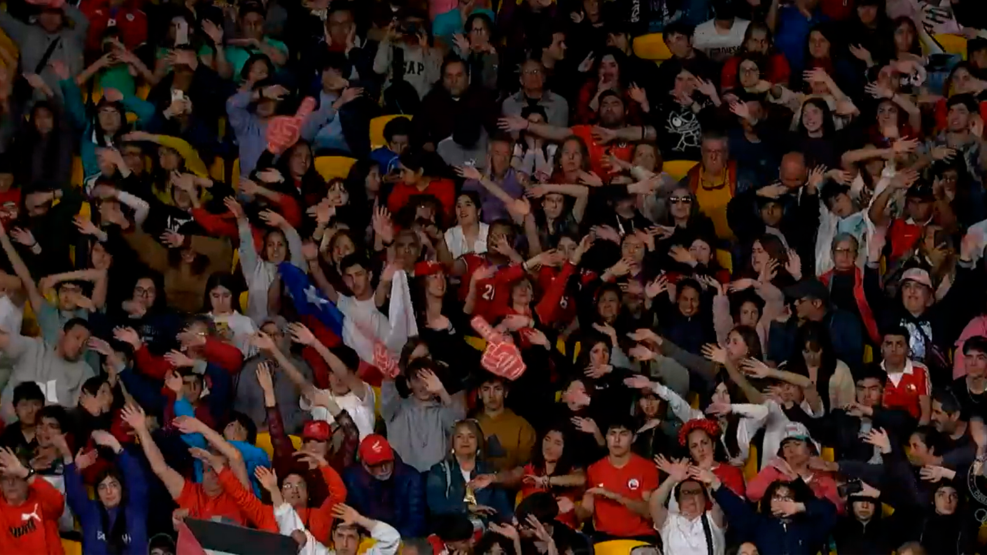 Mientras se desarrollaba una pausa en el partido entre Chile y República Dominicana, los asistentes movieron sus brazos al ritmo de la música, generando un divertido ambiente.