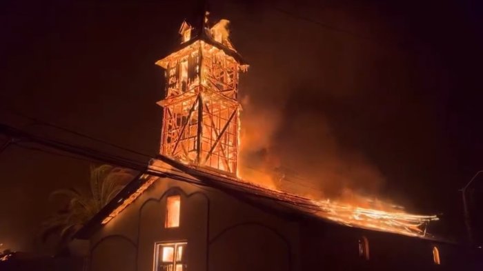 VIDEO | Iglesia de Lirquén resultó completamente quemada tras avance de incendios forestales