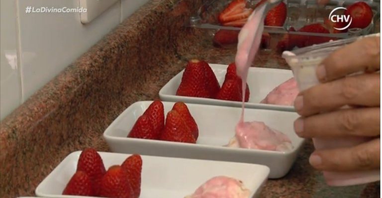 Adriano mostró su postre de berries nevados con salsa y granola