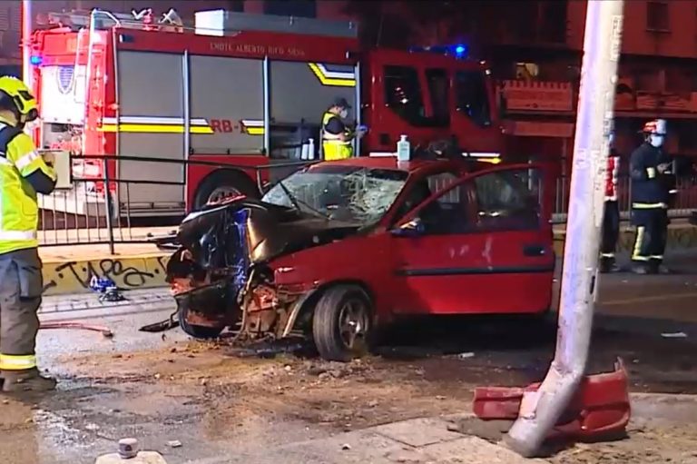 Conductor escapó de control policial en Santiago, terminó chocando, destruyó su auto y tuvieron que rescatarlo