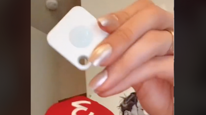 Al regresar a su casa luego de haber asistido a un cumpleaños, notó que dentro de sus pertenencias había un pequeño objeto que no era de ella. Así descubrió que era un localizador de corto alcance que funciona mediante Bluetooth.
