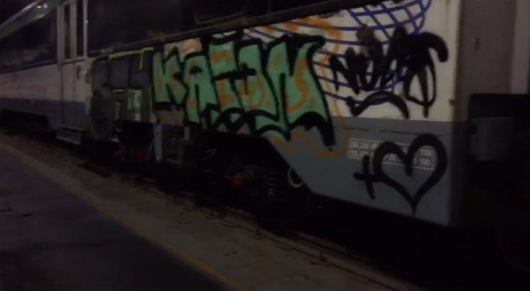 Detienen a 6 personas por rayar vagones del tren en Estación Central: Hubo episodios similares en marzo