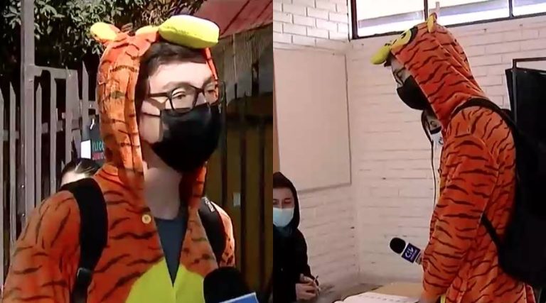 Hizo una apuesta por Twitter: Joven acudió a local de votación en Huechuraba con un particular pijama
