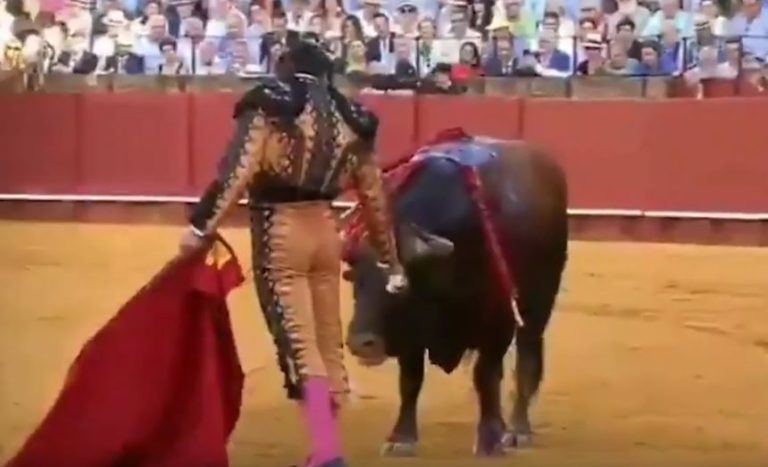 "Demencial y perverso": Polémica por gesto de torero que le seca las lágrimas al animal antes de matarlo
