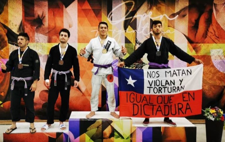 “Igual que en dictadura”: Chileno se subió al podio en torneo de jiu-jitsu con un mensaje para el mundo
