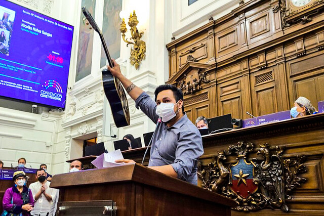 El sorpresivo discurso musical de Nicolás Núñez en la Convención: Tocó guitarra y citó a Chayanne