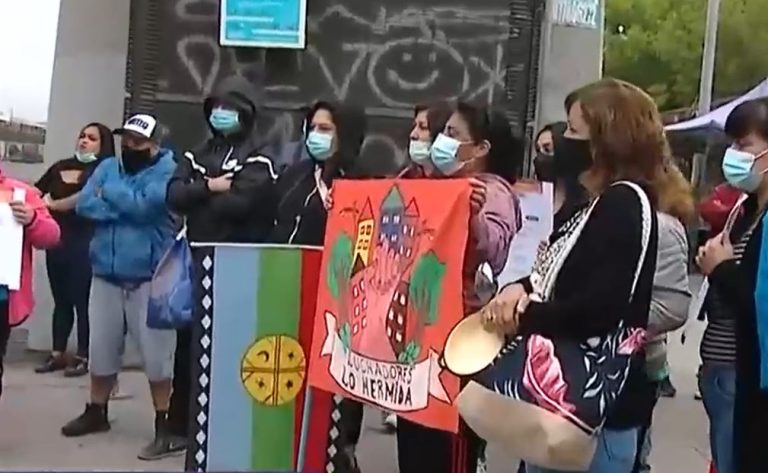 Agrupación Luchadores de Lo Hermida protesta fuera de Metro Los Presidentes exigiendo viviendas sociales