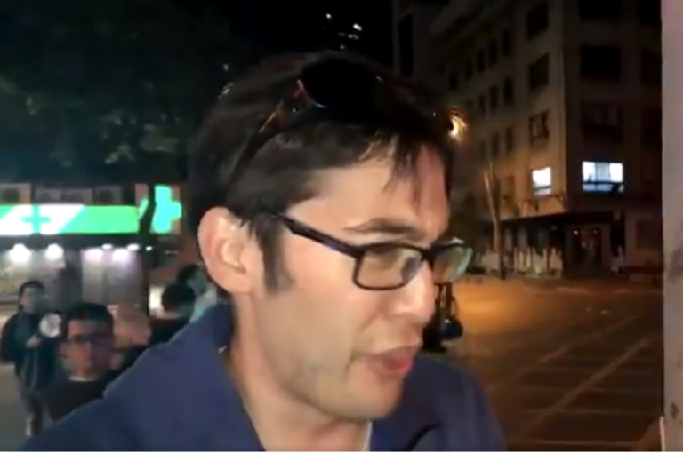 El momento en que manifestante es golpeado en la cabeza por bomba lacrimógena en plena entrevista con la BBC