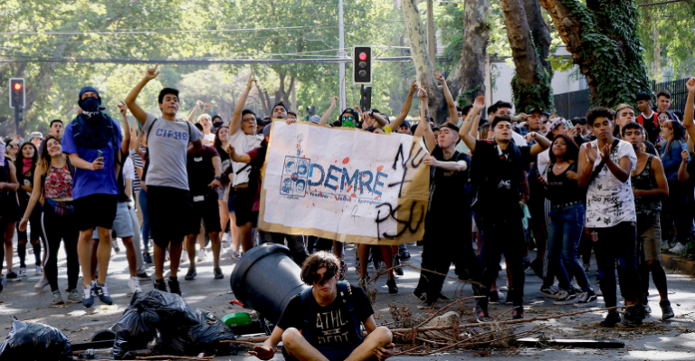 PSU: Secundarios protestaron en Plaza Egaña y el metro tuvo que cortar la luz