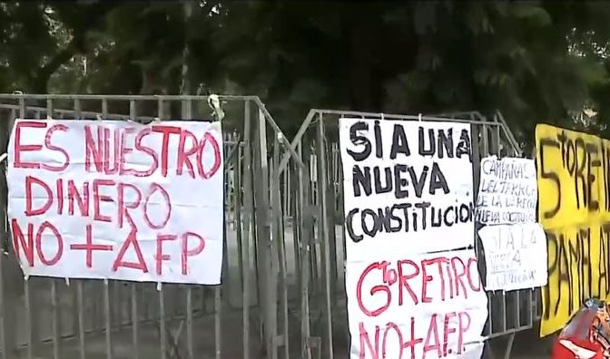 "Estamos pidiendo el 5to retiro, no el acotado": Pegan carteles fuera del Congreso en día clave del proyecto