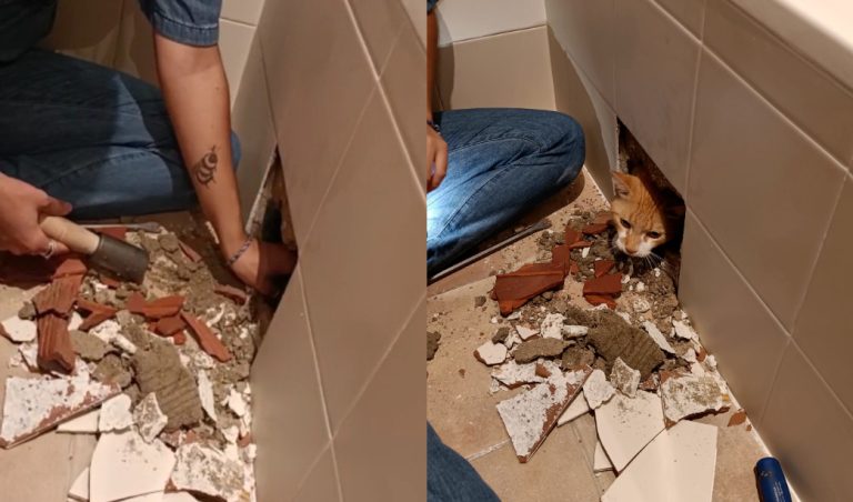 Lo sacó a martillazo limpio: Joven española se viraliza tras contar cómo su gato terminó encerrado al interior de su bañera