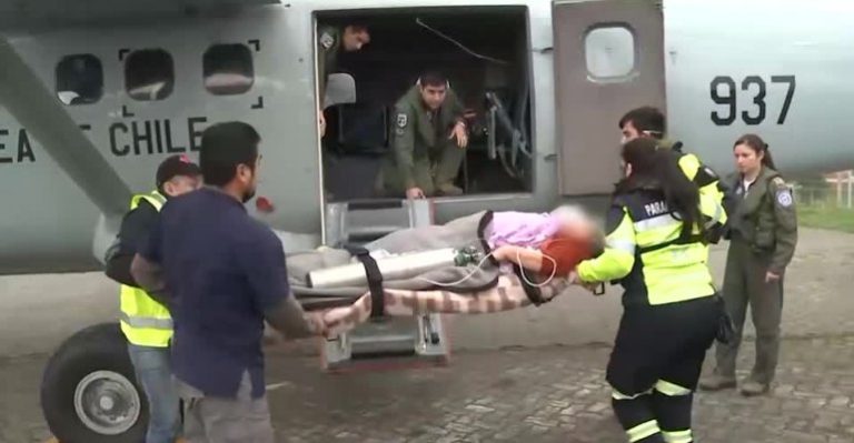 El equipo del SAMU junto a personal de la FACH realizaron un rescate aéreo