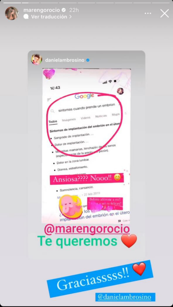 También manifestó en la misma captura de pantalla que desea que su posible bebé se “aferre a ella” y que “serán re felices”.