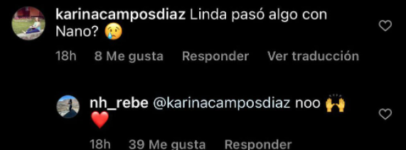 Ante esto, Naranjo fue clara, desechando cualquier rumor de separación. “Noo“, acompañado de un emoji de corazón fue la respuesta de la joven. Pero esto no quedó ahí, ya que más tarde confirmó que asistió junto con Nano al concierto de Karol G.