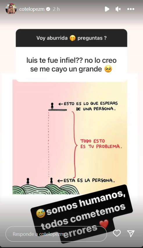“Luis te fue infiel? No lo creo que se me cayó un grande”, le comentaron a lo que López respondió “somos humanos, todos cometemos errores”.