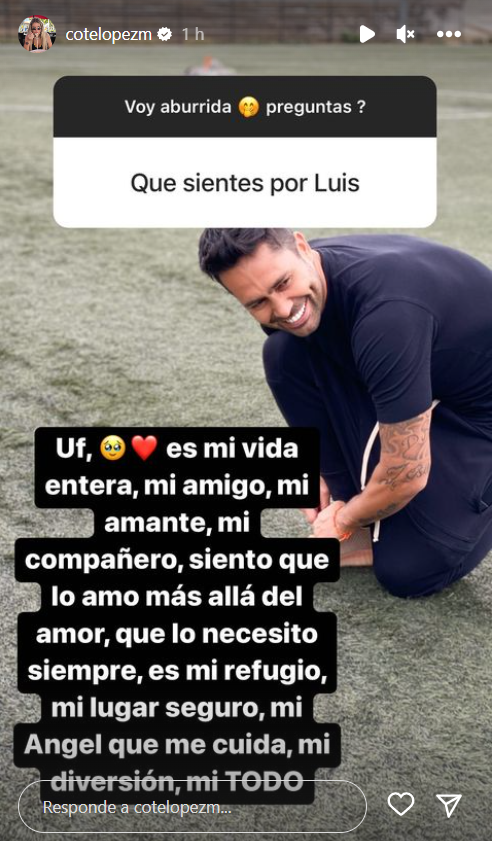 Pese a ello, consultada por lo que siente por Luis Jiménez, Coté dijo que “es mi vida entera, mi amigo, mi amante, mi compañero, siento que lo amo más allá del amor, que lo necesito siempre. Es mi refugio, mi lugar seguro, mi ángel que me cuida, mi diversión y mi todo”.