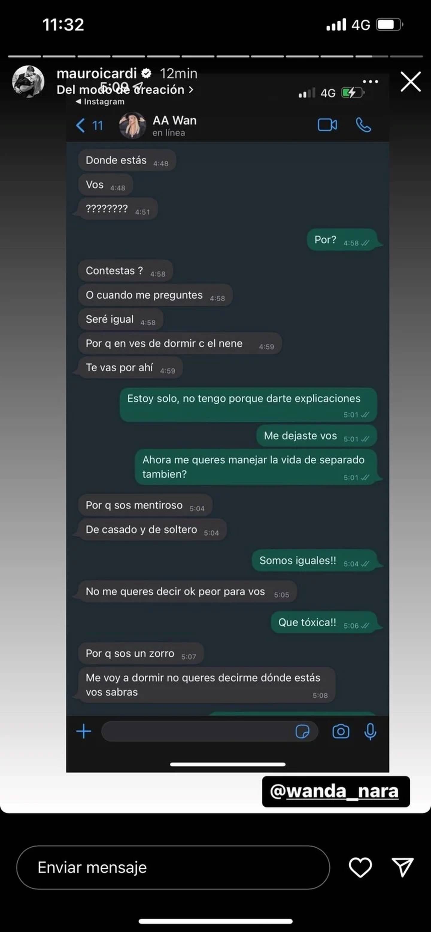Los conflictos entre Mauro Icardi y Wanda Nara están lejos de terminar. Luego de que hace algunos días, la influencer confirmara su quiebre definitivo, el futbolista compartió una serie de mensajes privados en sus redes sociales.