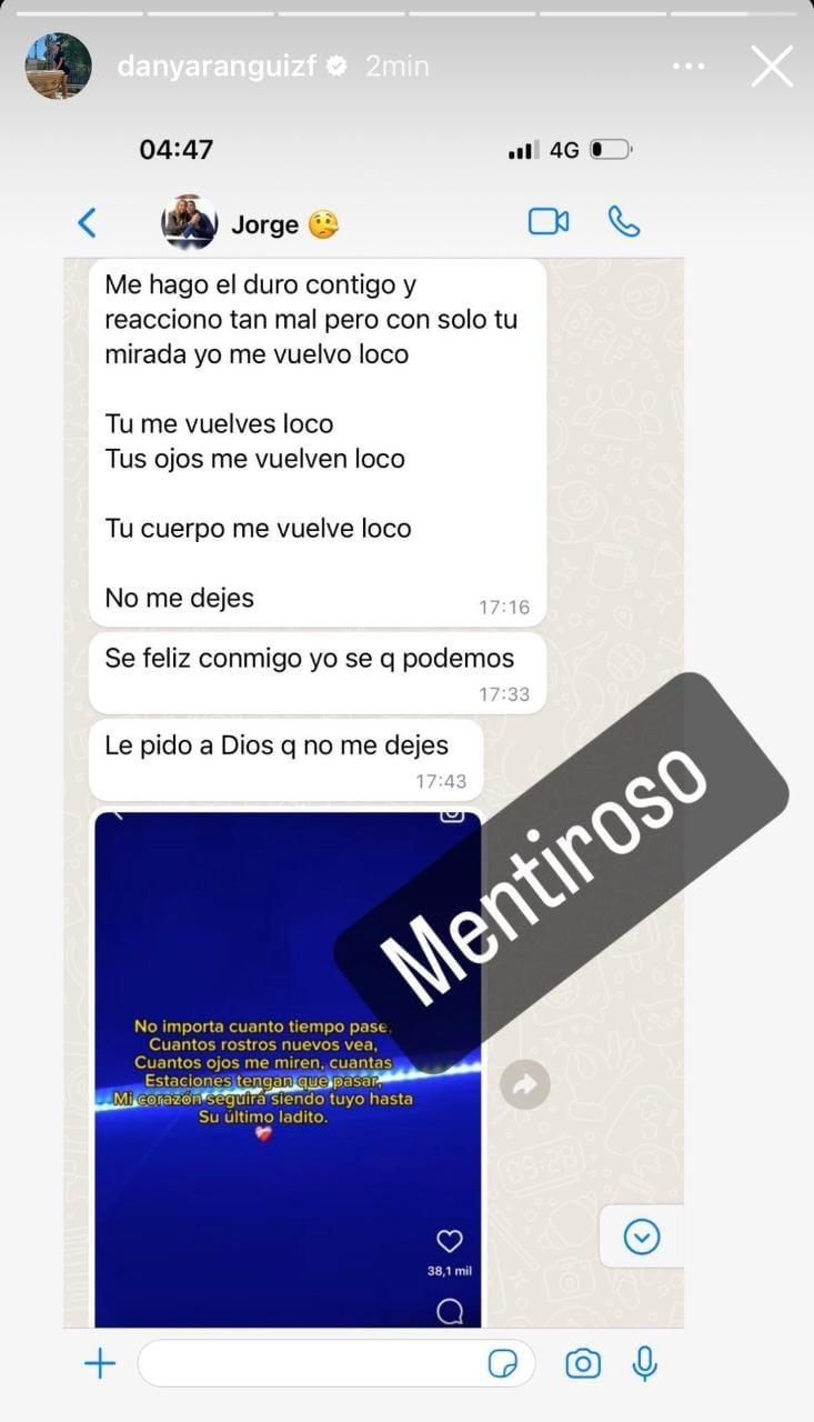 Sin embargo, los problemas estarían lejos de terminar para el exjugador de Colo Colo y la panelista de TV. La noche de este lunes, Daniela Aránguiz compartió una captura de pantalla donde exponía públicamente íntimos mensajes que le había enviado Jorge Valdivia.