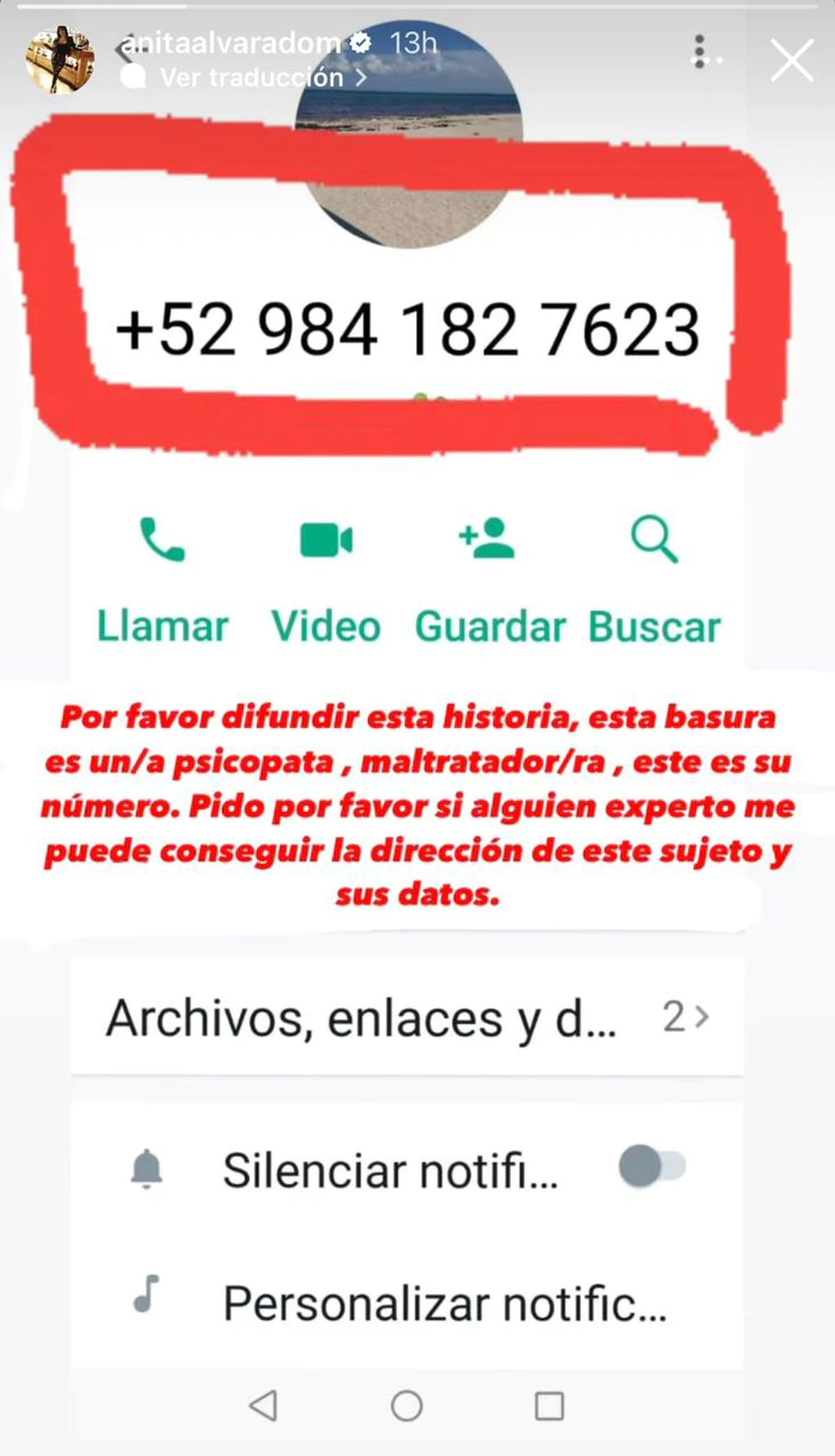 “Por favor difundir esta historia, esta basura es un/a psicópata, maltratador/ra, este es su número”, fue parte de su desahogo en redes sociales. A pesar de que no dio más detalles, le pidió por favor a sus seguidores que le puedan facilitar la dirección y datos del sujeto.