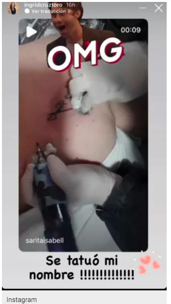 Obviamente, Ingrid reaccionó ante el notable gesto de su seguidora y compartió en sus historias de Instagram una foto donde se ve a la colombiana luciendo con orgullo su tatuaje. Asimismo, escribió “Se tatuó mi nombre”.
