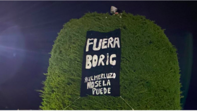 Entre los mensajes en contra del jefe de Estado se puede leer: “Fuera Boric” y “el merluzo no se la puede”. Por el momento, no se sabe quiénes fueron los responsables de la polémica intervención que generó debate en internet.