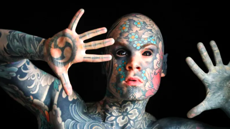 El francés de 37 años tiene una trayectoría laboral de más de diez años y como él mismo se describe, ‘el profesor más tatuado del mundo’. Según sus dichos, el sujeto asegura haber pasado más de 460 horas de su vida tatuándose, incluso tiene tatuajes en los ojos.