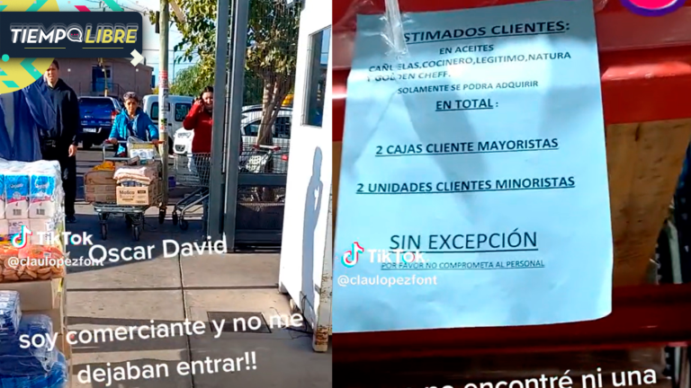 “Nos vamos al aceite. Si te fijás, acá en el papelito dice dos cajas clientes mayoristas, dos unidades para minoristas sin excepción. Acá les voy a mostrar que los chilenos se llevan tres cajas de aceite. A ver si encontramos a la señora. Ahí, ¿viste? Es así queridos… Argentina”, agregó con molestia.
