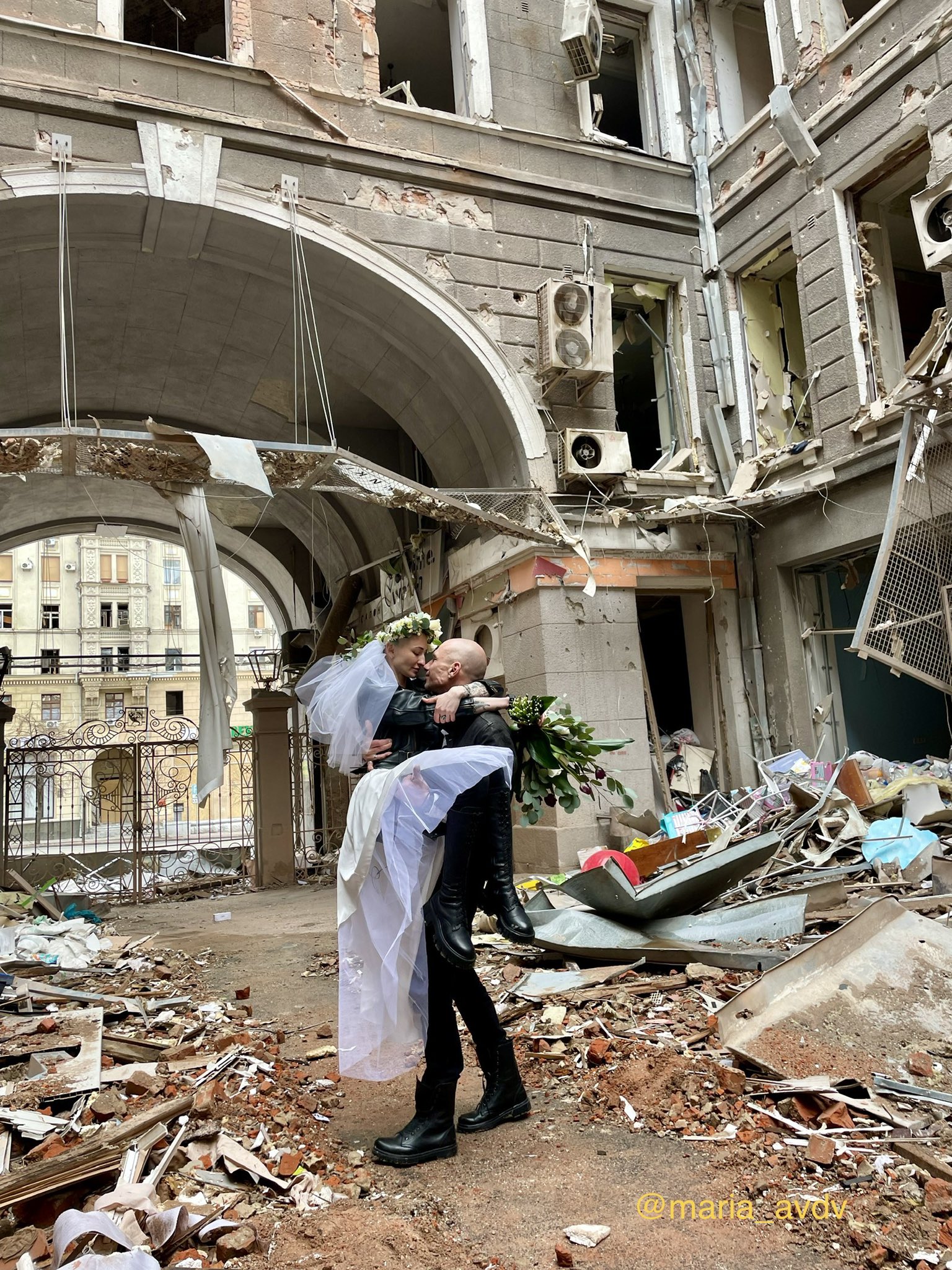 En los restos de concreto de un edificio en Kharkiv, el amor ganó una vez más la batalla de la guerra que afecta a millones de ucranianos.