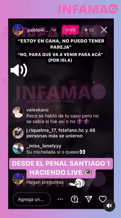 El hermano del futbolista de la Universidad Católica utilizó su cuenta de Instagram para hacer una transmisión en vivo donde respondió algunas preguntas de sus seguidores. Sin embargo, generó controversia debido a que las personas privadas de libertad tienen prohibición de usar celulares.