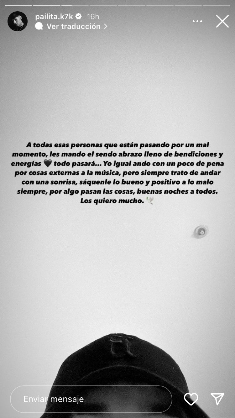 El cantante urbano subió un mensaje a sus redes sociales, dando pistas de su actual estado anímico.