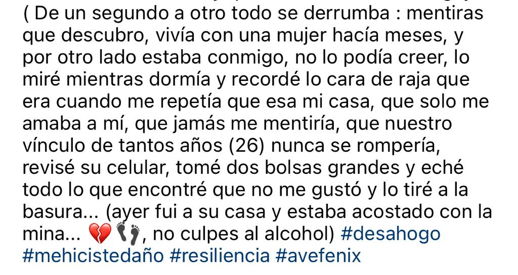 La ex chica reality relató el drama de infidelidad en sus redes sociales.