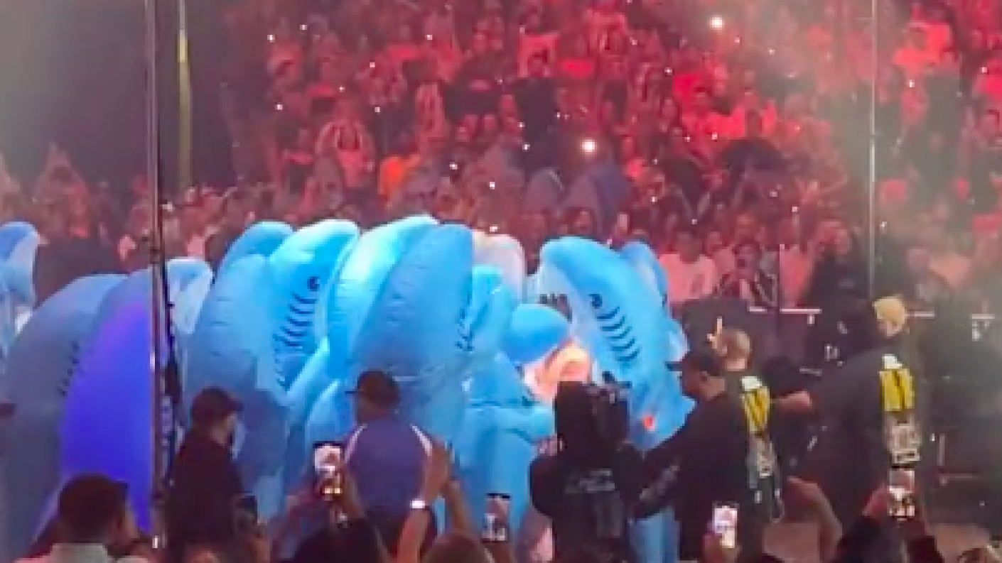 Durante una presentación de Bad Bunny en Miami, fanáticos del cantante llegaron al concierto disfrazados de tiburón, todo en honor a la canción Safaera. Los jóvenes tuvieron su premio por la caracterización.