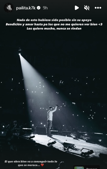 En la última story compartida, volvió a agradecer por el apoyo recibido por sus seguidores. “Nada de esto hubiera sido posible sin su amor. Bendición y amor hasta para los que no me quieren ver bien. Los quiero mucho, nunca se rindan”.
